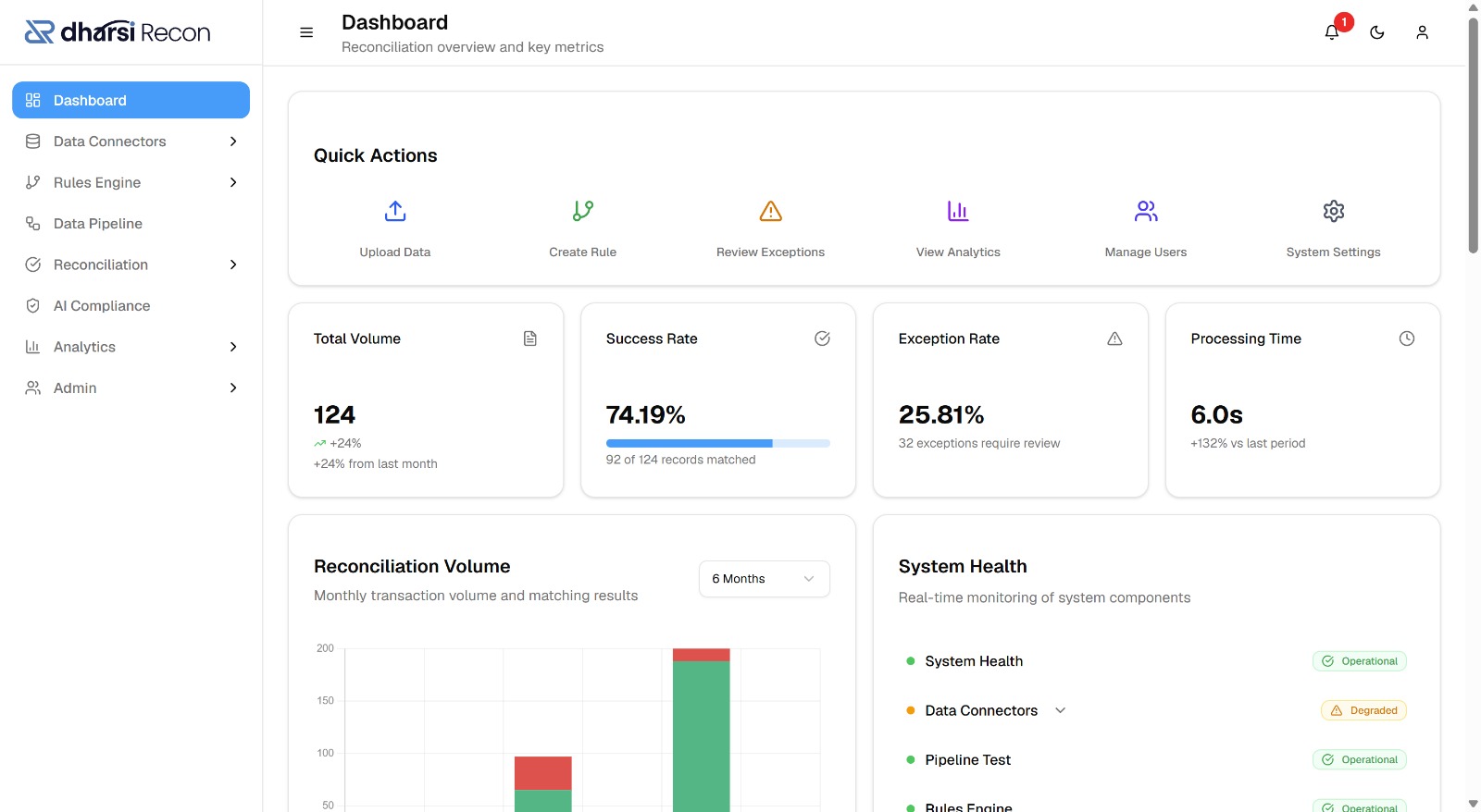 dharsi Recon is an automated transaction matching and reconciliation platform built for any team that needs to match, validate, and reconcile data across systems.